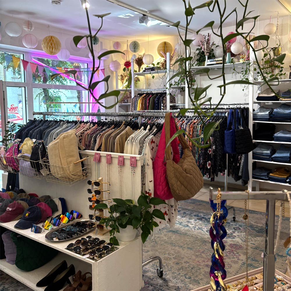 Unsere zwei Stores in Berlin Friedrichshain bieten ein ausgewähltes Sortiment an Second Hand, Vintage + Contemporary Fashion