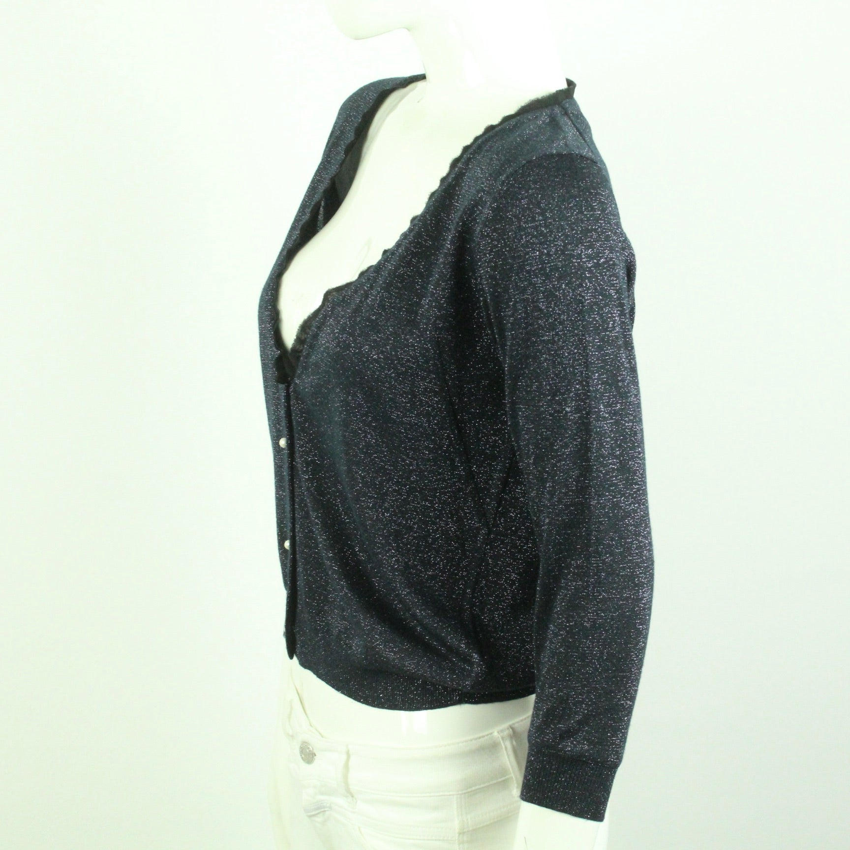 Details: dunkelblau, silber, Knopfleiste, 3/4-Arm, V-Ausschnitt