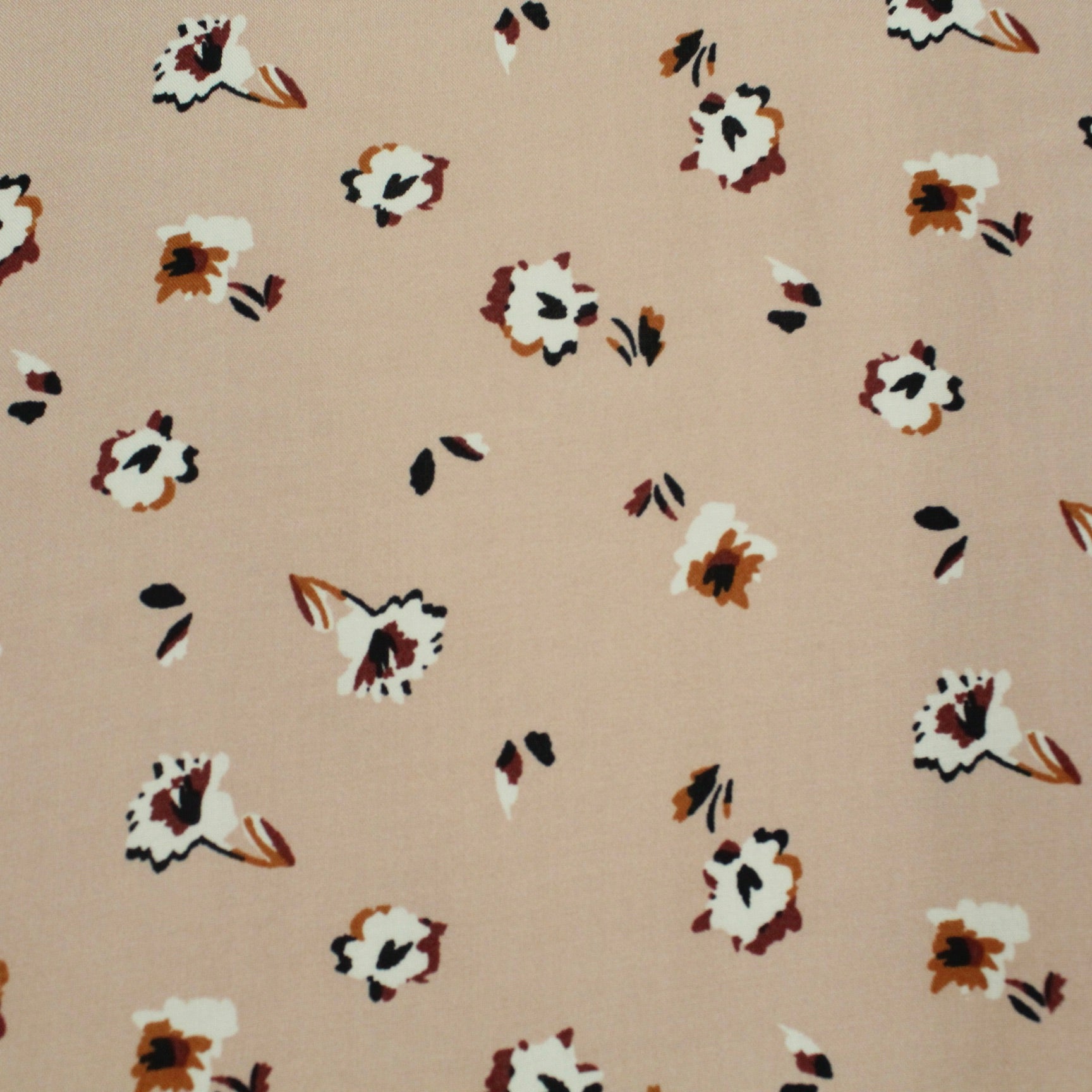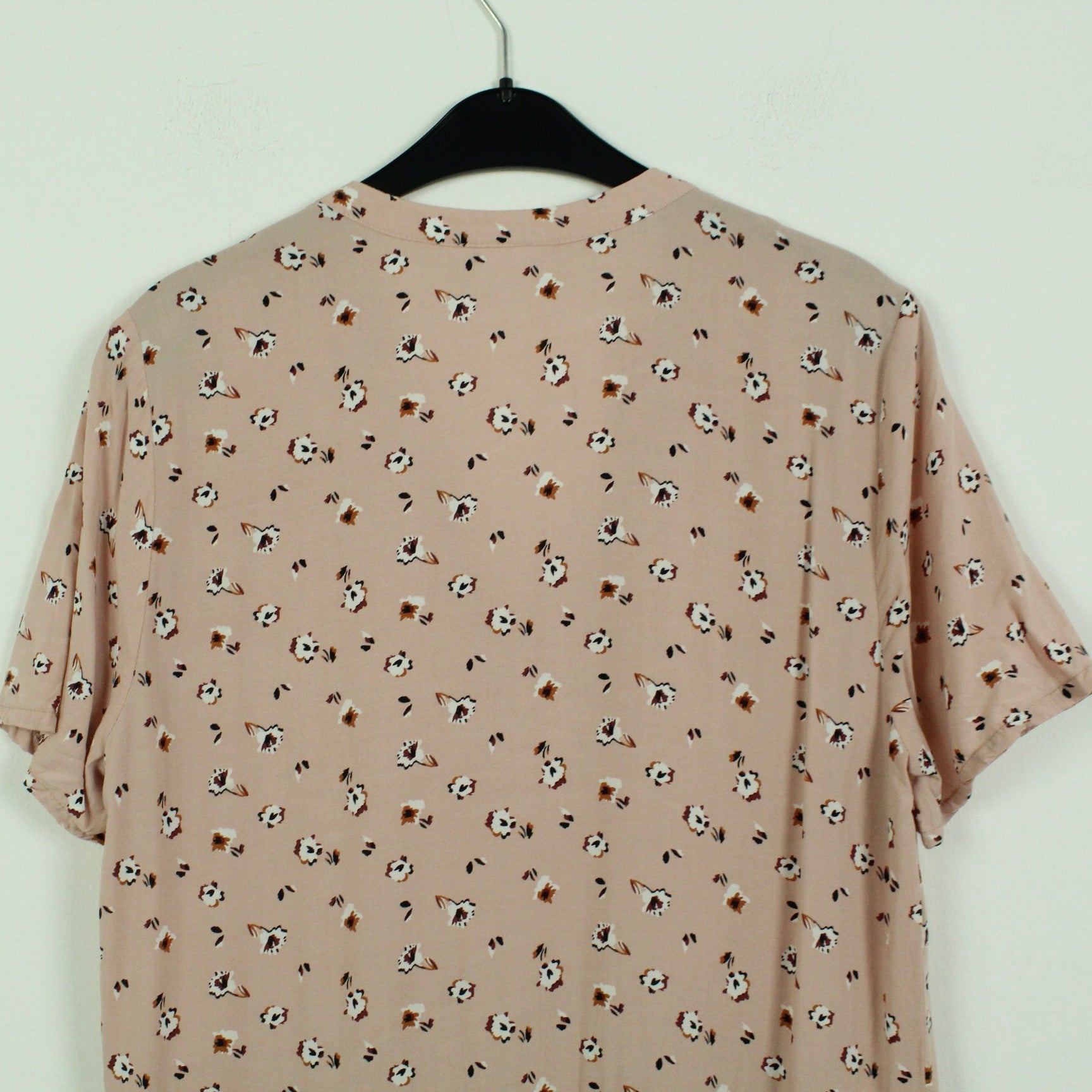 Details: rosa, abstrakt geblümt, kurzarm, V-neck, lockere Passform