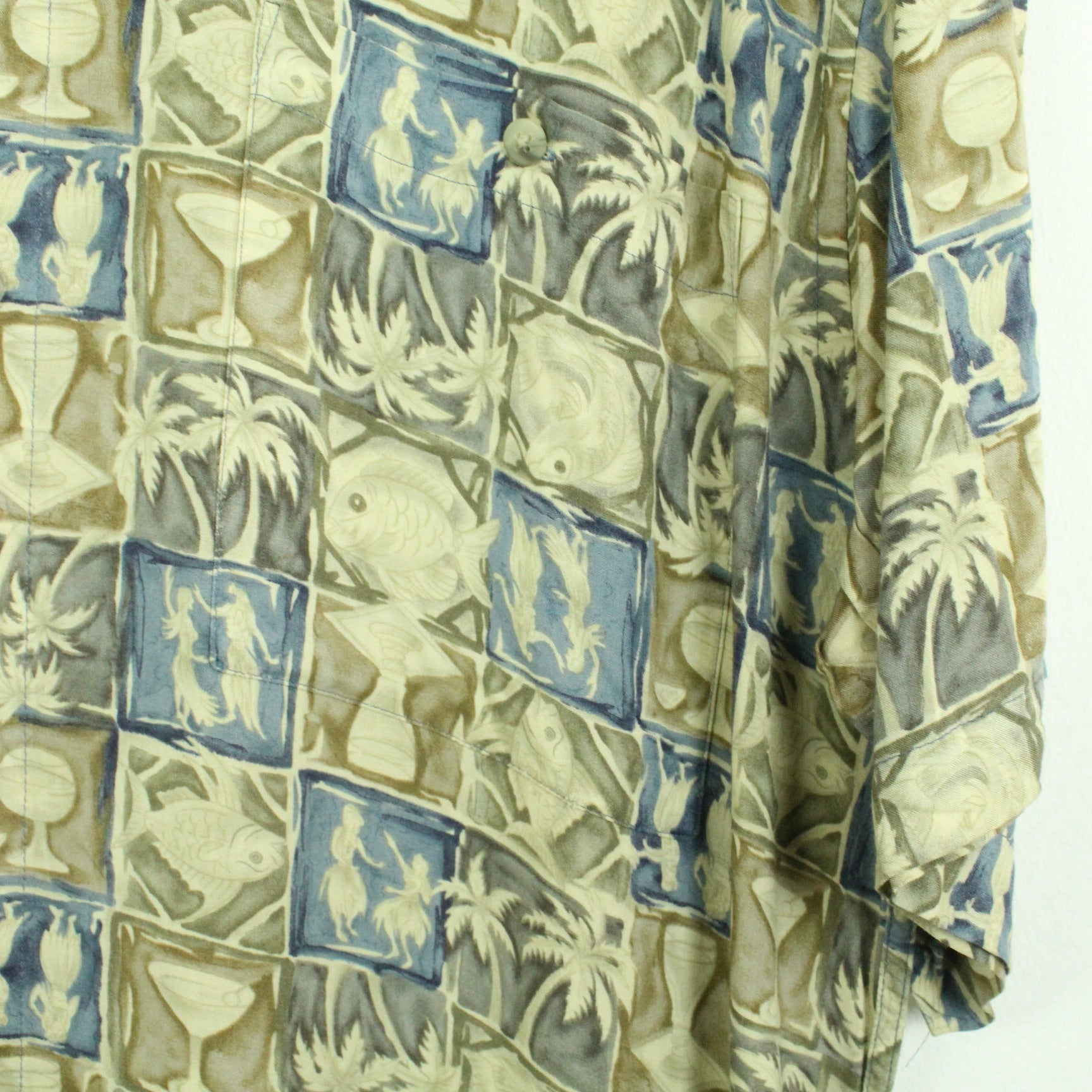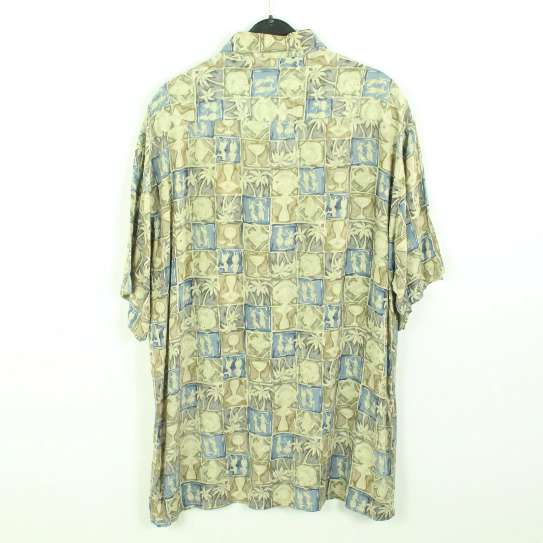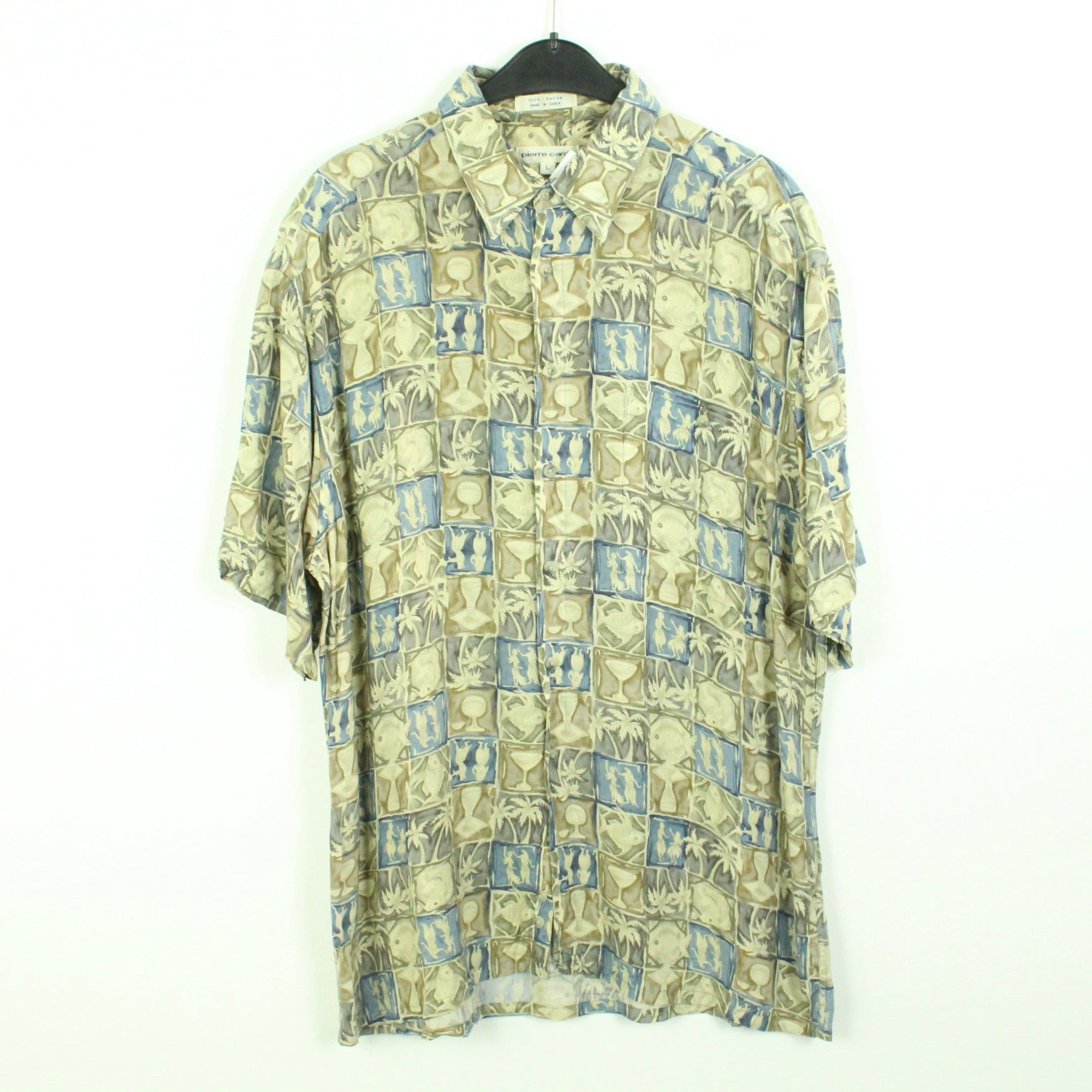 Details: beige, blau, gemustert, Crazy Pattern, 90s, lockere Passform, kurzarm
