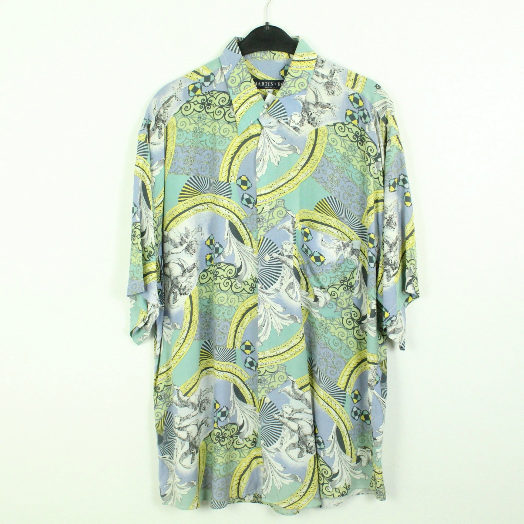 Vintage 90s Crazy Pattern Hemd Gr. XL bunt gemustert kurzarm (*)