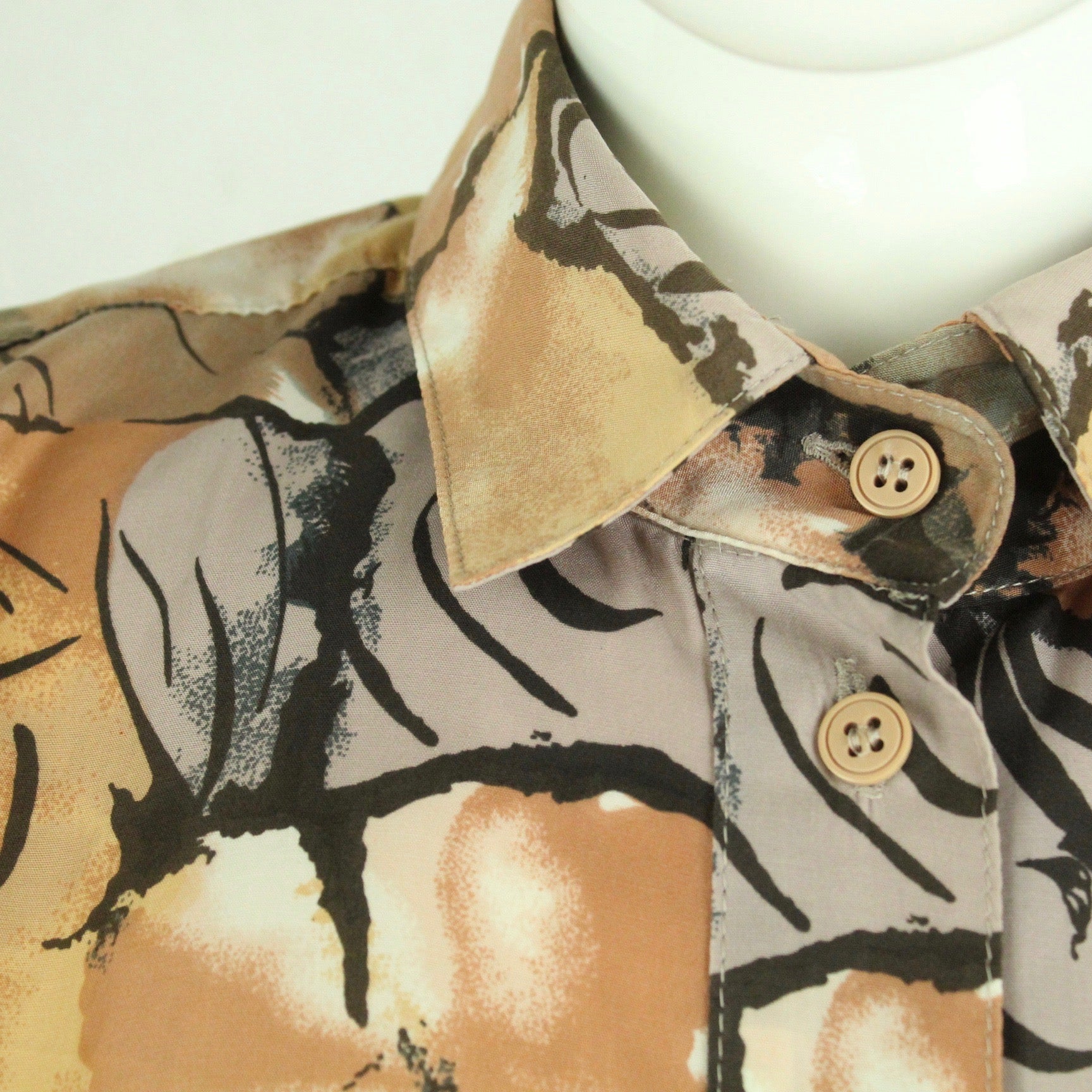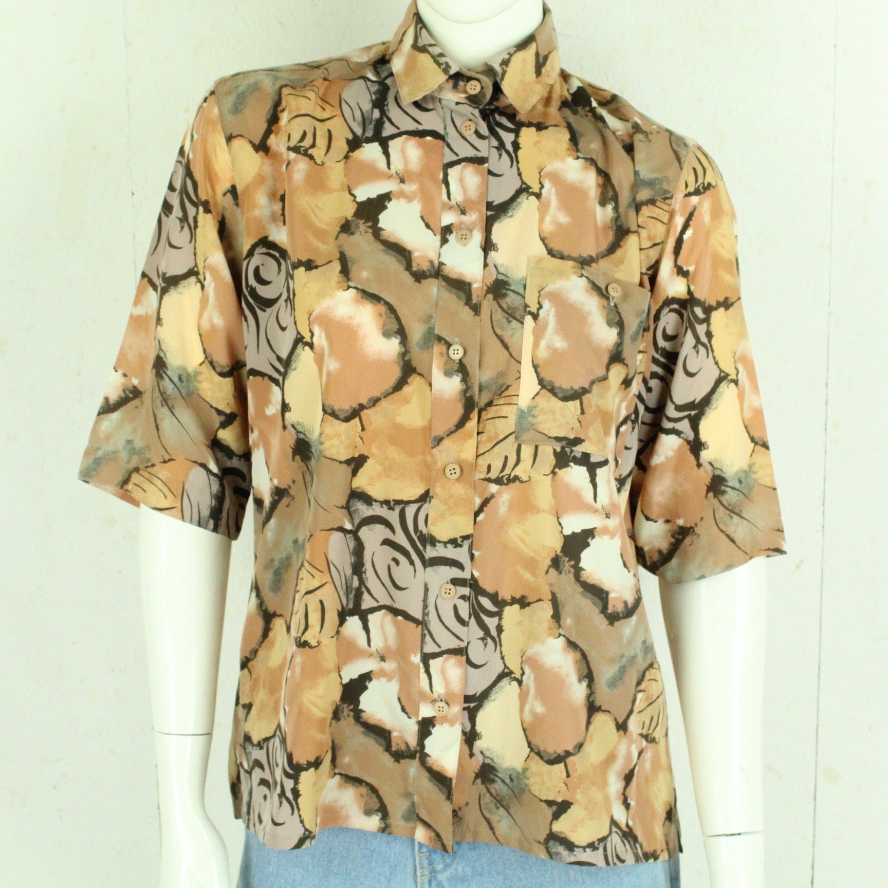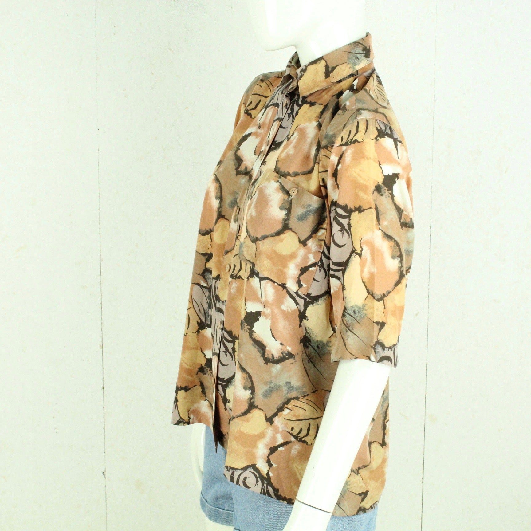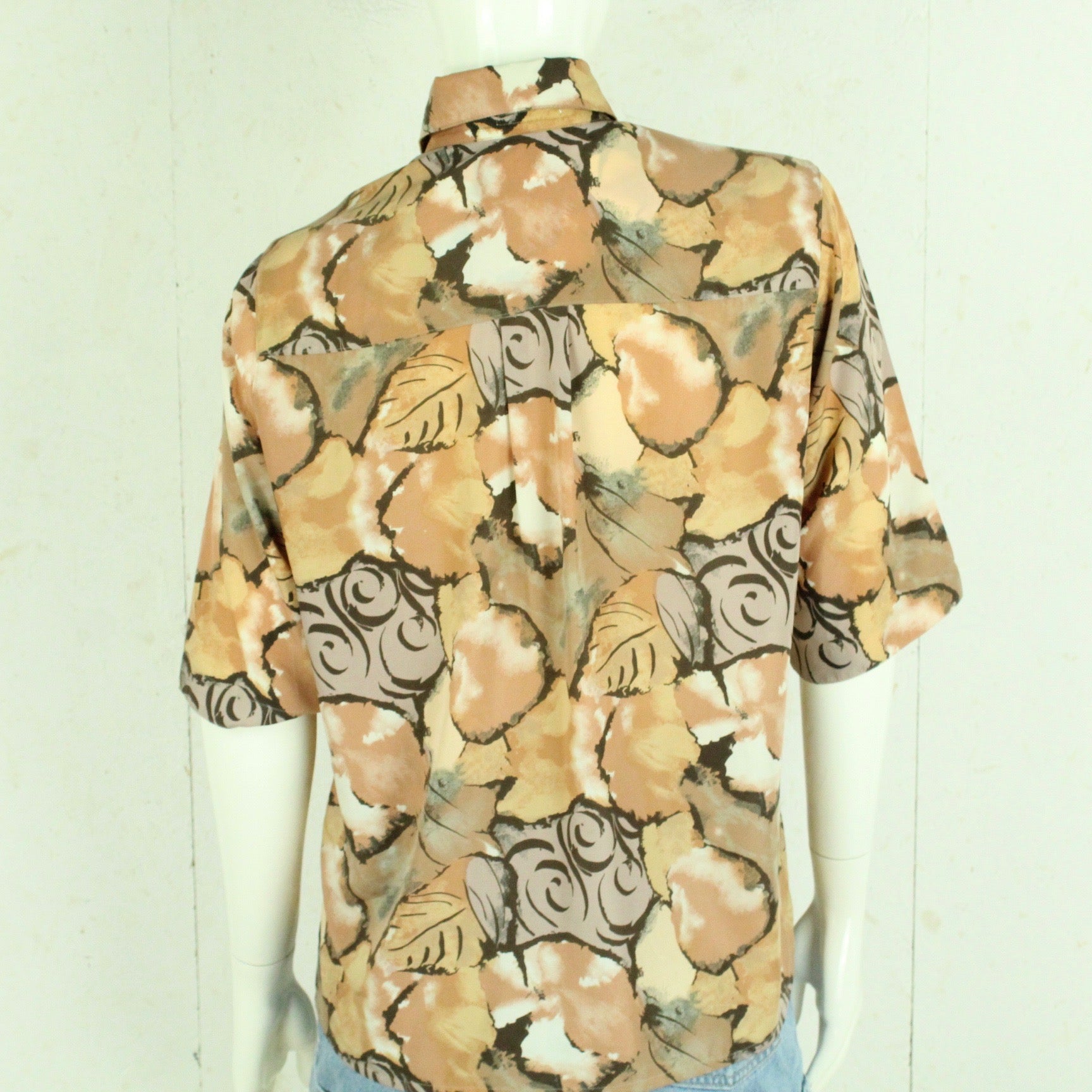 Vintage Bluse Gr. M braun beige Crazy Pattern kurzarm