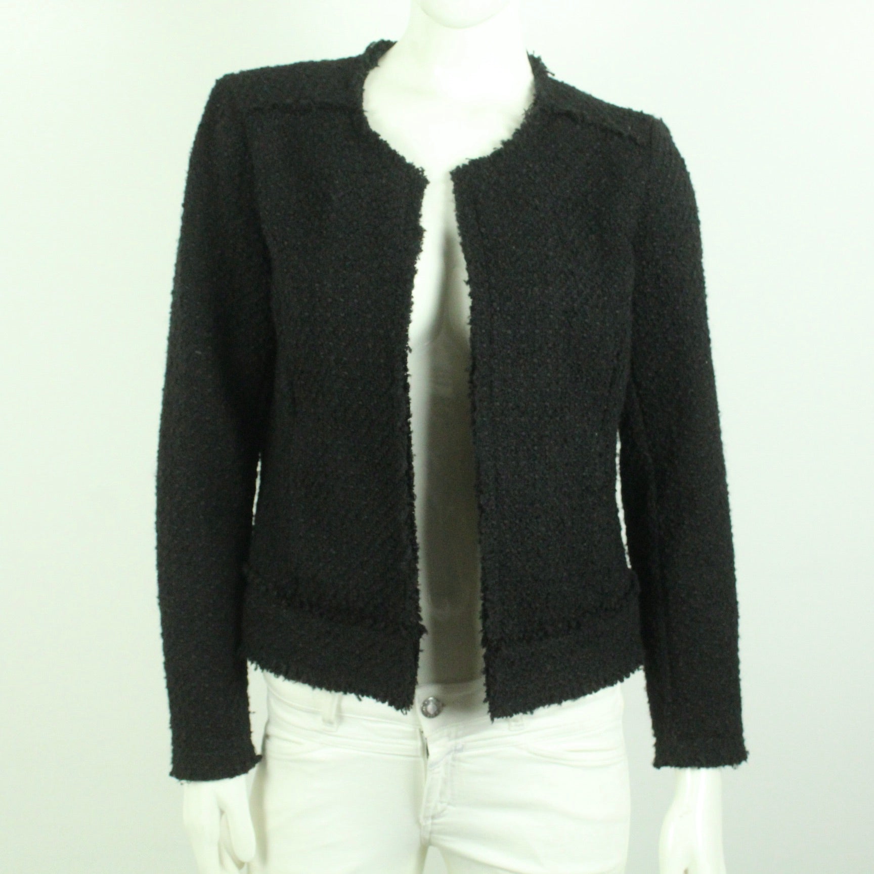 Details: schwarz, uni, langarm, Modell Vigga Boucle Jacket, ohne Verschluß, seitliche Eingrifftaschen