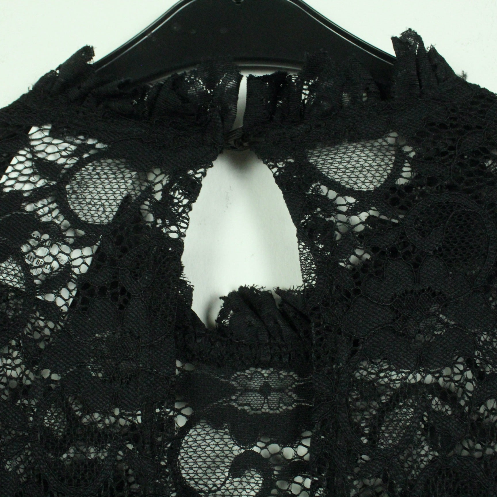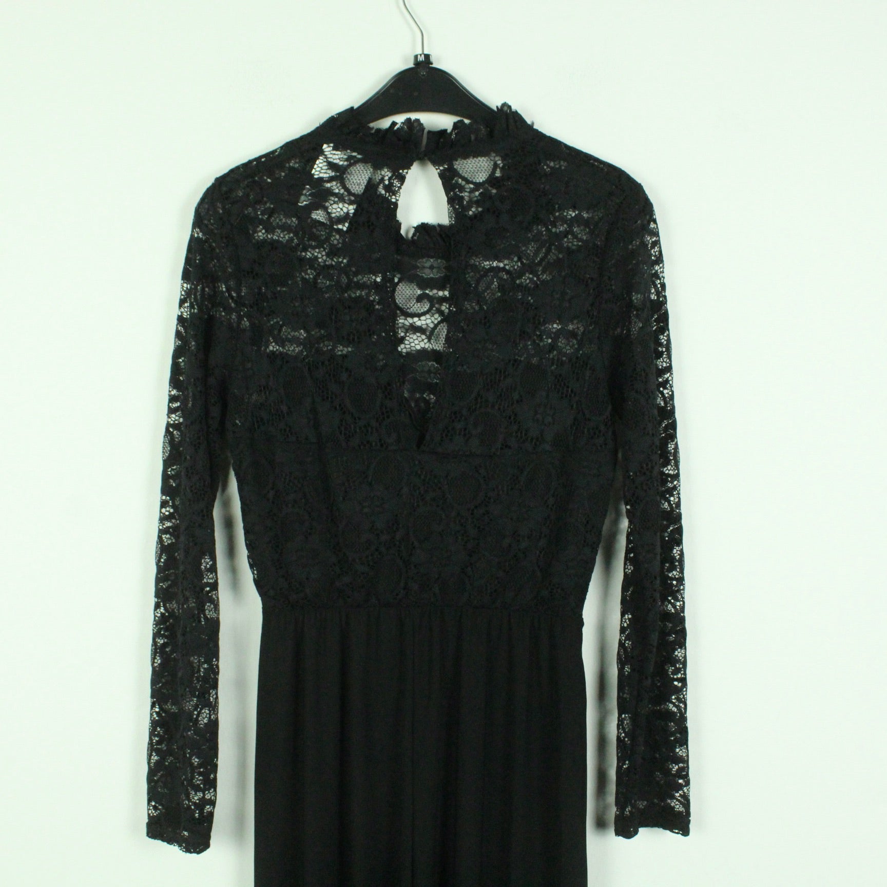 Details: schwarz, uni, langarm, Spitze, weites gerades Bein
