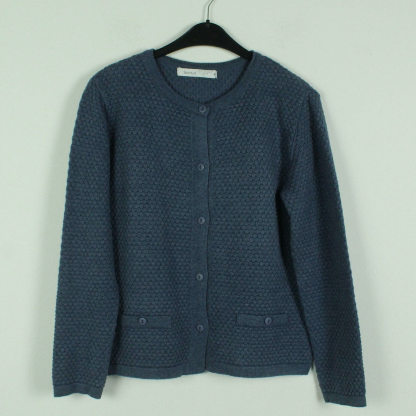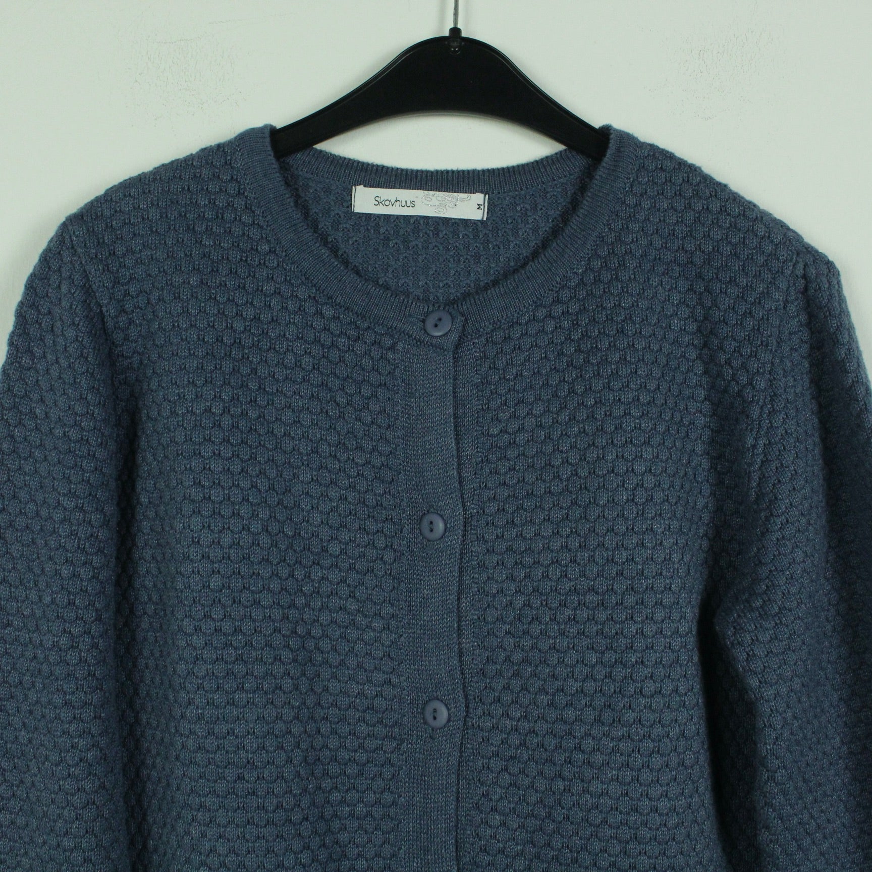 Details: blau, uni, langarm, rundhals, durchgehende Knopfleiste