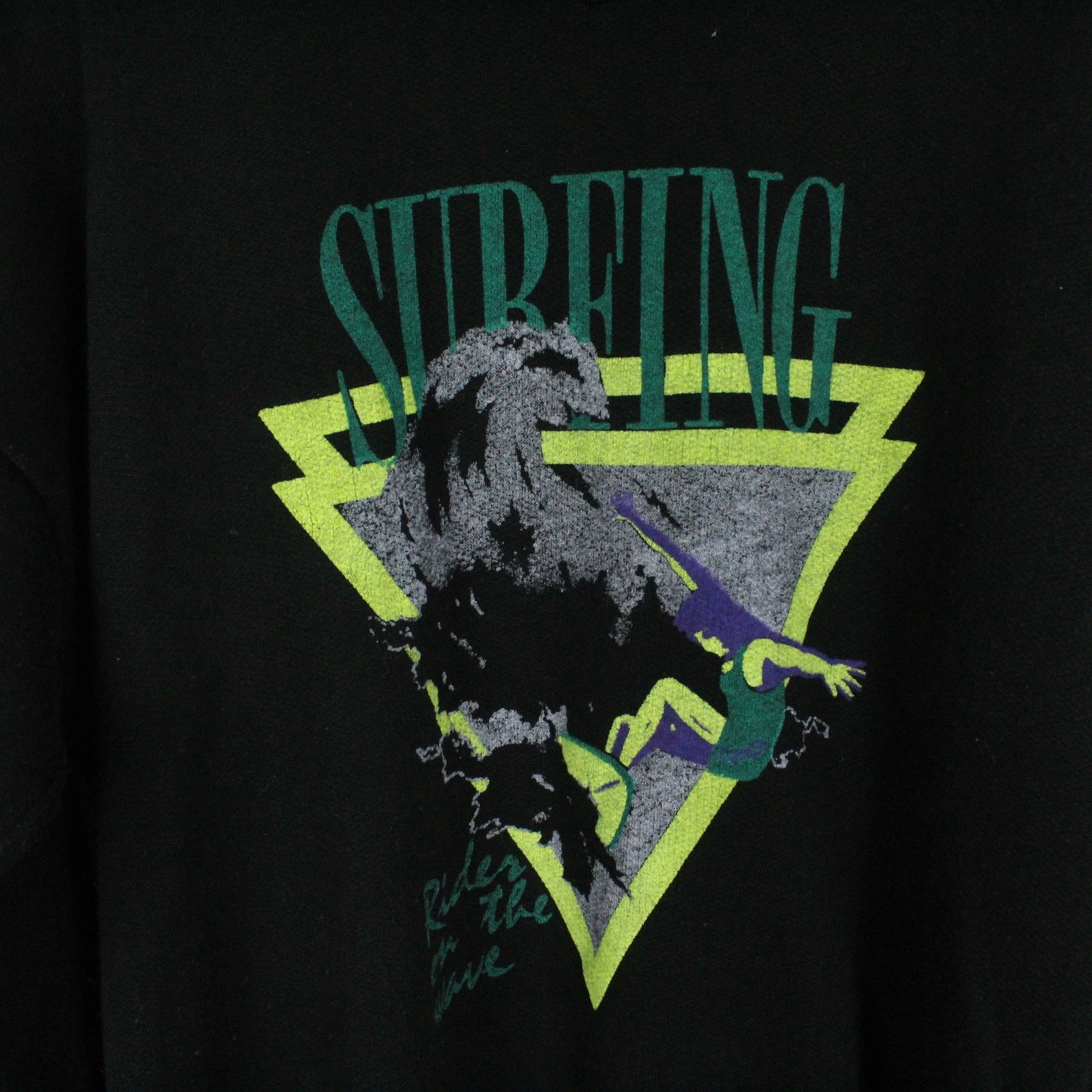 Details: schwarz, mit "SURFING" Print, 90s, mir Reißverschluss und Zugband am Kragen