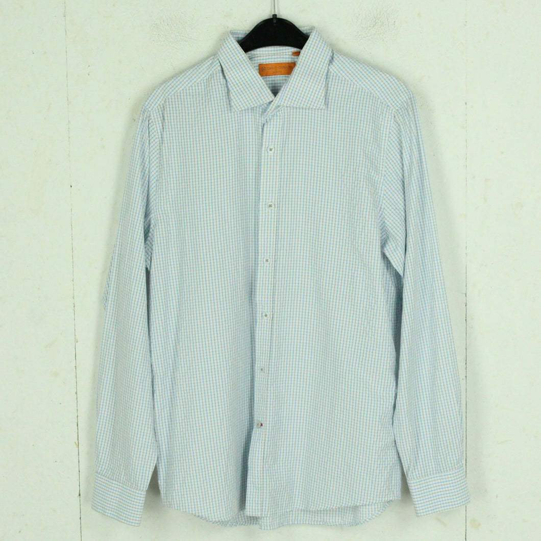 Details: blau, weiß, grau, durchgehende Knopfleiste, langarm, kariert