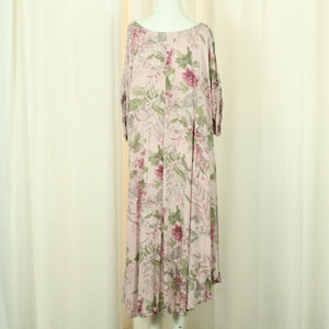 Details: rosa, mehrfarbig, geblümt, rundhals, Midikleid