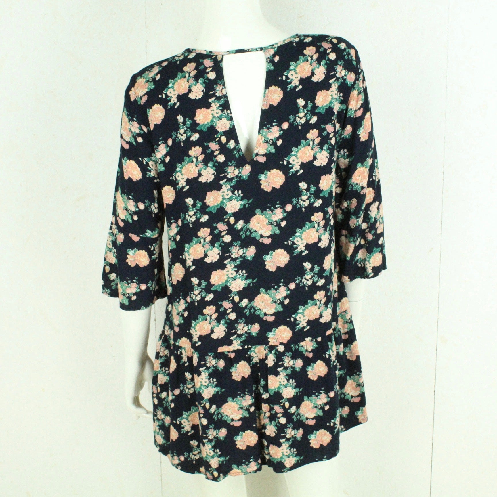 Details: blau, mehrfarbig, geblümt, 3/4 Arm, rundhals, Minikleid